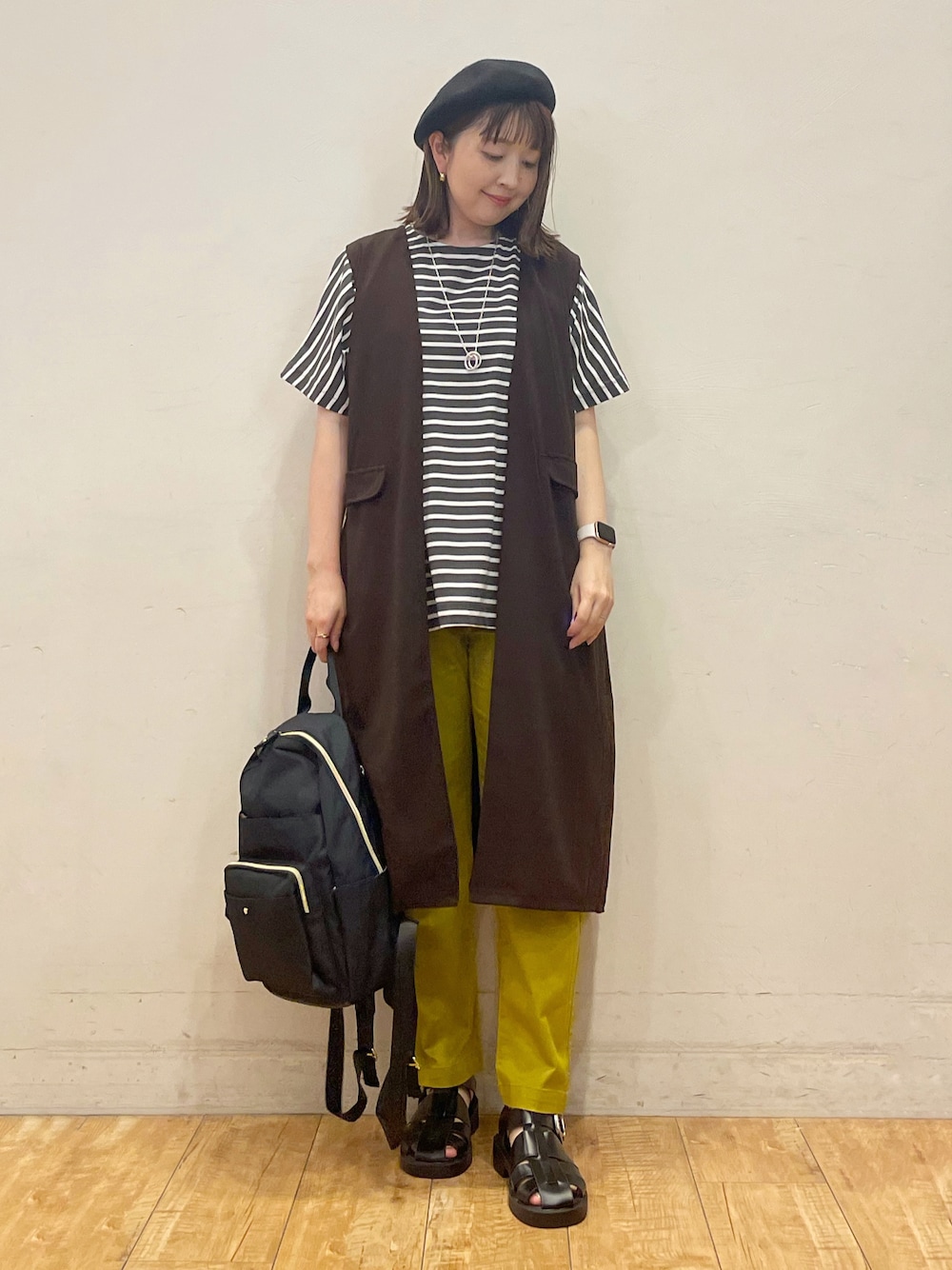 ご覧いただきありがとうございます( ・ᴗ・ )♡ いいねやお気に入り+、フォローも ありがとうございます♡ 素敵なフォルダにも入れてくださって ありがとうございます🙇♀ 秋カラーコーデ🍁 半袖Tシャツにロングジレ✨ ジレを1枚足すだけで、夏→秋のコーデに♪ 合わせたパンツは、シューラルー人気のイージーテーパードパンツの新色♡ マスタードカラーを差し色にしてみました🙌 小物はブラックでまとめて引き締めました☺️ 𓂃𓂃𓂃𓂃𓂃𓂃𓂃𓂃𓂃𓂃𓂃𓂃𓂃𓂃𓂃𓂃𓂃 *WORLD ONLINE STOREの スタイルスナップにも投稿してます♪ 色んなコーデを載せてるので プロフィールのリンク(🖥)から チェックお願いします👀✨ *Instagram→ rina_y26 別ショットや日常のことを載せてます♡ プロフィールからチェック🙏 ぜひフォローして下さいね❁ 見てくださってありがとうございます♡
