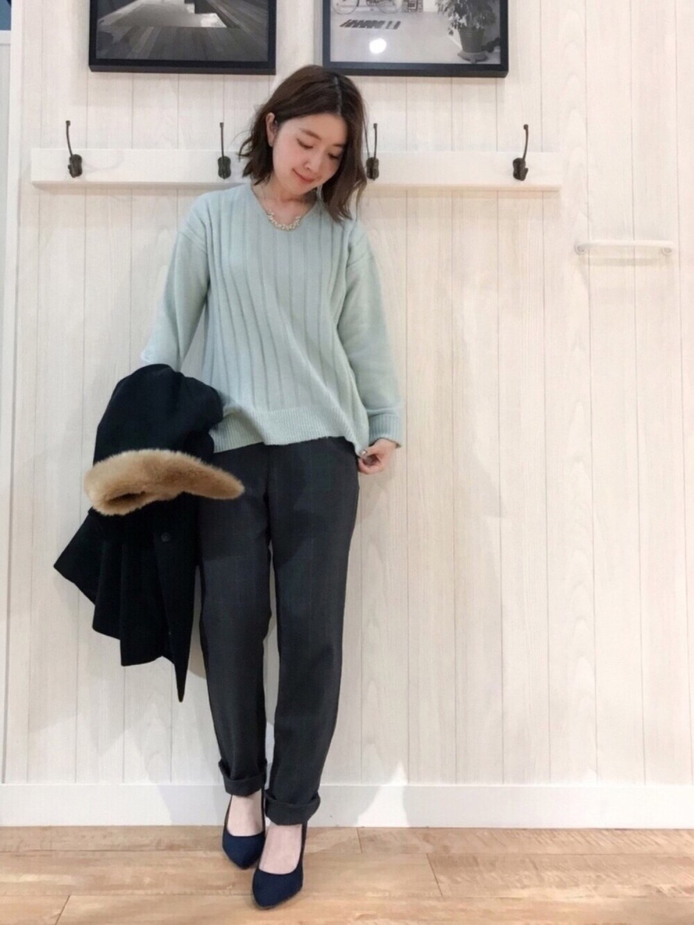 ご覧いただきありがとうございます(*^o^*) いつも いいねやSAVE、フォローもありがとうございます♡ 今週末は最強寒波がきてるそうで💦💦 めちゃくちゃ寒いですね( ; ; ) 私の住んでる地域では雪はまだ降ってないですが、ニュースで真っ白銀世界なのを見て驚いております😱💦 早くあったかくなれー💦 本日のコーデは、ミントグリーンのカラーが可愛いニットが主役♡ オフィスカジュアルにも大丈夫なきれいめコーデです(*^^*) ニットの丈が長すぎないので、テーパードパンツやワイドパンツと相性がいいです♪ DRESKIPの新作ニットなのですが、生地も柔らかくて伸びがいいです(^o^) ワイドリブのデザインも可愛くてお気に入りです♡ 合わせたテーパードパンツは、シューラルーの履き心地抜群のタイプ♪ さりげなくチェック柄が入ってます✨ 形が綺麗で、ストレッチも効いてるのでかなり履きやすいです(*^^*) シューラルーのテーパードパンツ、出るたびに2色は買ってしまいます…笑 履きやすいし合わせやすいので 笑 着回せるしいっか♪と自分に言い聞かせてます 笑