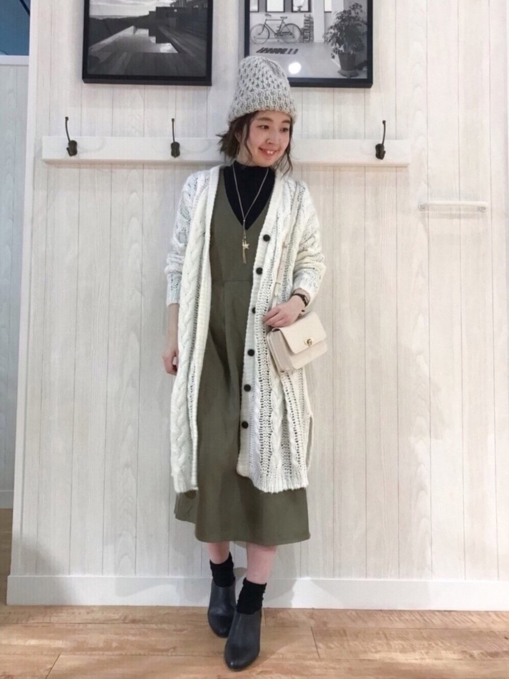 リナ(SHOO・LA・RUE)のカーディガン/ボレロ「◆ケーブルニットカーディガン」を使ったコーディネート