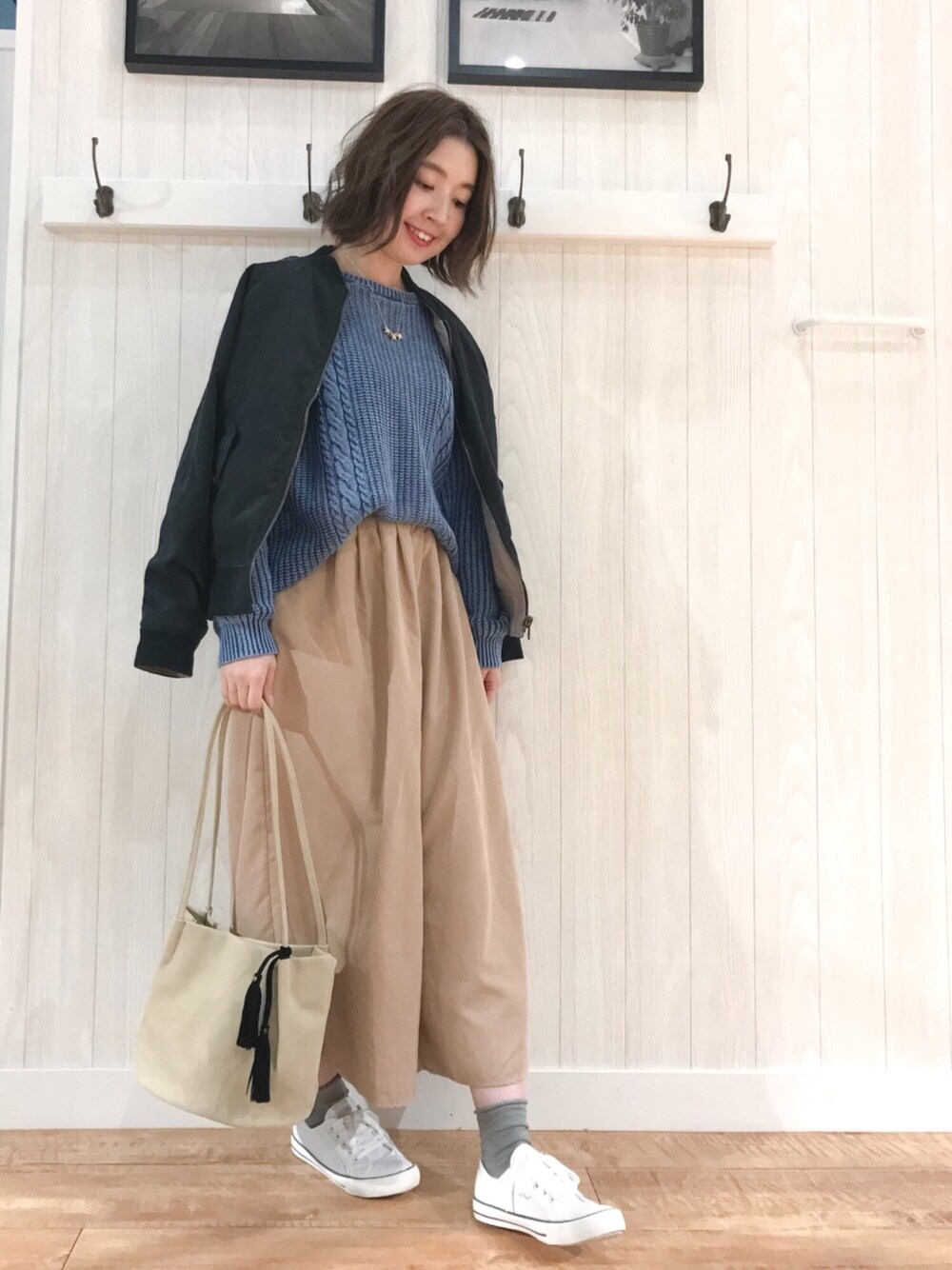 ご覧いただきありがとうございます(*^o^*) いつも いいねやSAVE、フォローもありがとうございます♡ 今日も寒いですね💦😭 出勤時風が強すぎて、髪ボロボロになりました 笑 週末も気温低い予報が出てるし、めっちゃ雪の降ってる所もあるみたいですね😱 早く暖かくなってほしいものです(´Д` ) 本日は、リバーシブルのMA-1ブルゾンを使ったカジュアルコーデ♪ こちらのCutie Blondeの新作のブルゾンは、MA-1風とスタジャン風のリバーシブルになってます(^-^) 気分によって、ガラッと雰囲気が変えられるのが嬉しいですね♡ スタジャンバージョンも小窓に載せてますので、見ていただければと思います♪ 合わせたニットは、ストーンウォッシュでデニムみたいな風合いなのが新鮮で一目惚れ♡ ドロップショルダーで、ゆるっとしたシルエットなのも着やすいポイントです(^ ^) 室内メインの日はこの感じで大丈夫ですが、外に出かける時にはコート必須ですね(^^; 早く寒さを気にせず、春服着たいなぁ(*´-`)