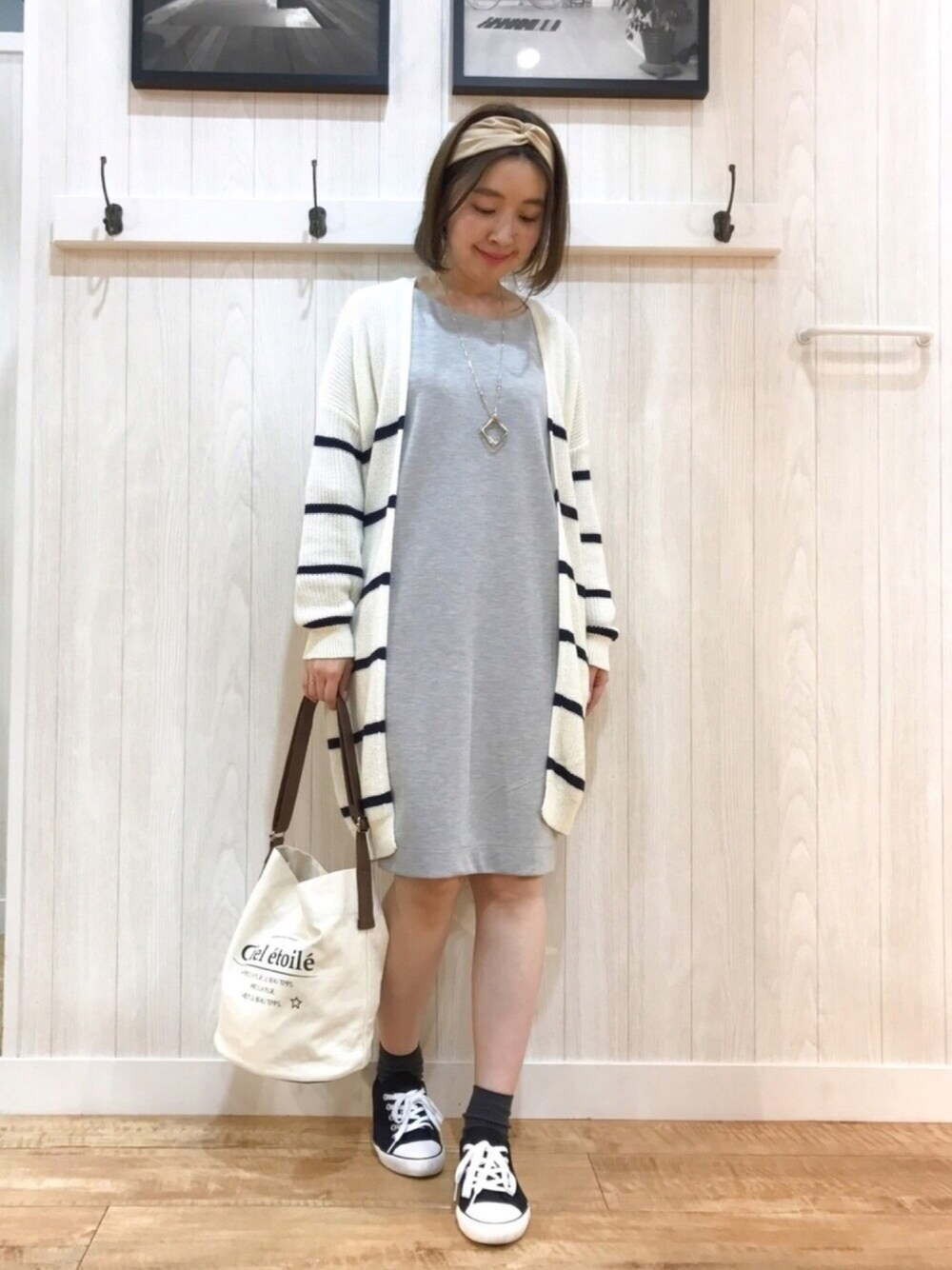 ご覧いただきありがとうございます(*^o^*) いつも いいねやSAVE、フォローもありがとうございます♡ 本日は、ボーダー×グレー☆ あぜ編みのざっくりロングカーディガンに、ポンチ素材のワンピースを合わせたゆるカジュアルコーデです♡(´∀`*) こちらのDRESKIPのワンピース、お袖がフレアになってるのがポイント♪(*^^*) 程よく厚みがあって、体のラインも出にくいのでゆるっと着やすいです♡ 丈も膝くらいなので、1枚着でもスキニー合わせでもどちらでも大丈夫そう(*^^*) アウターなしで、お袖が見える分も小窓に載せてます(^^) 小物は、Cutie Blondeのスニーカーとキャンバス地のバケツバッグを合わせてカジュアルに☆ このスニーカー、かなりのヘビロテ✨ 履きやすいし、コーデに合わせやすいしでお気に入りです♡ 3,229円とプチプラなのも嬉しいところ(*^^*) 23.5cmを履いてます☆ 見て下さってありがとうございます♪(*´∀`*)