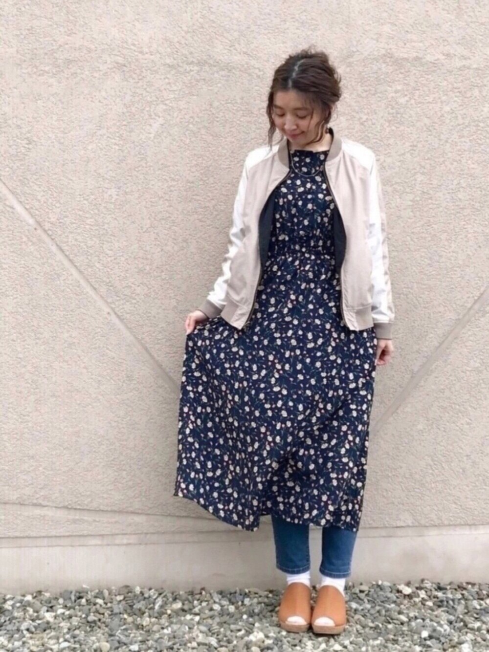 ご覧いただきありがとうございます(*^o^*) いつも いいねやSAVE、フォローもありがとうございます♡ 昨日のお休み、お買い物に行ってきました♪ 父の誕生日プレゼントを買いにプラプラしました(*^^*) ホワイトデーということで、ロールケーキもゲット♡ 美味しくいただいて満足な休日でした(*^▽^*) そんな本日は、休日のお出かけコーデ☆ スタジャンに花柄ワンピを合わせて甘辛に(^ ^) こちらのスタジャンは、以前着ていたMA-1のリバーシブルにした側です(*^▽^*) チラッと見えてるデニムは、シューラルーの新作(*^^*) こちら、今までシューラルーになかった素材で作られたスキニーデニムなんです♡ コーヒー豆から作られた素材で、ストレッチが効いていて、吸水速乾や接触冷感の効果があって夏も履けるデニム♪ さらりと履きやすいし、のびもいいしお気に入りです♡ 見て下さってありがとうございます♡