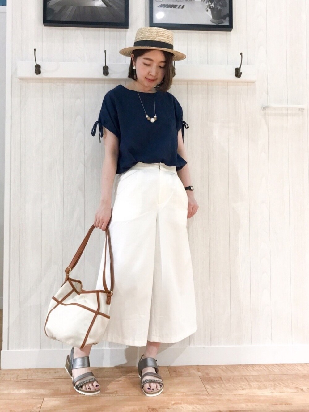 ご覧いただきありがとうございます(*^o^*) いつも いいねやお気に入り+、フォローもありがとうございます♡ 最近日中は半袖でも大丈夫な日が増えてきましたね〜☀️ これからどんどん暑くなるのかな?💦😱 本日は、ネイビー×ホワイト♪ シューラルーのお袖の結びリボンが可愛いブラウスに、白のガウチョパンツを合わせました☺ ブラウス、同色の糸でお花の刺繍になってるのですが、写真では全然わからなーい💦😭 小窓の商品情報の方で、見て頂けると嬉しいです♡ ネイビー・ホワイト・ピンクの3色展開です♪ 生地もコットン100%なので、さらりと着心地も良くて快適です✨ 見てくださってありがとうございます♡ インスタもマイペースですが、更新してます(^ ^) ぜひこちらも遊びに来て下さい♡ Instagram▷rina_y26