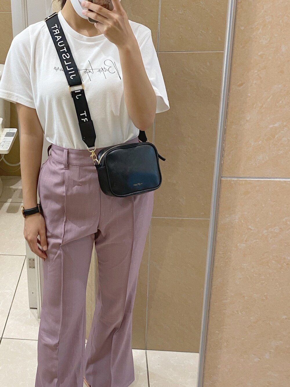 楽ちんコーデ☺︎ しまむらのパンツが形と色が可愛くて色違いも購入🥺 左にトイレが、、、笑
