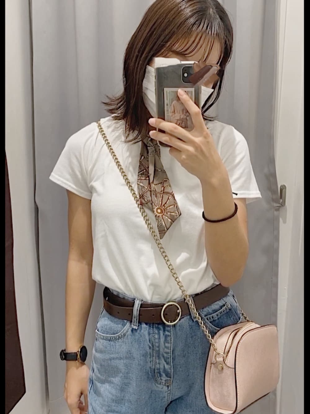 無地の白Tの着回し最高❕ 首に巻くだけで一気にオシャレになるし、白T大好き~