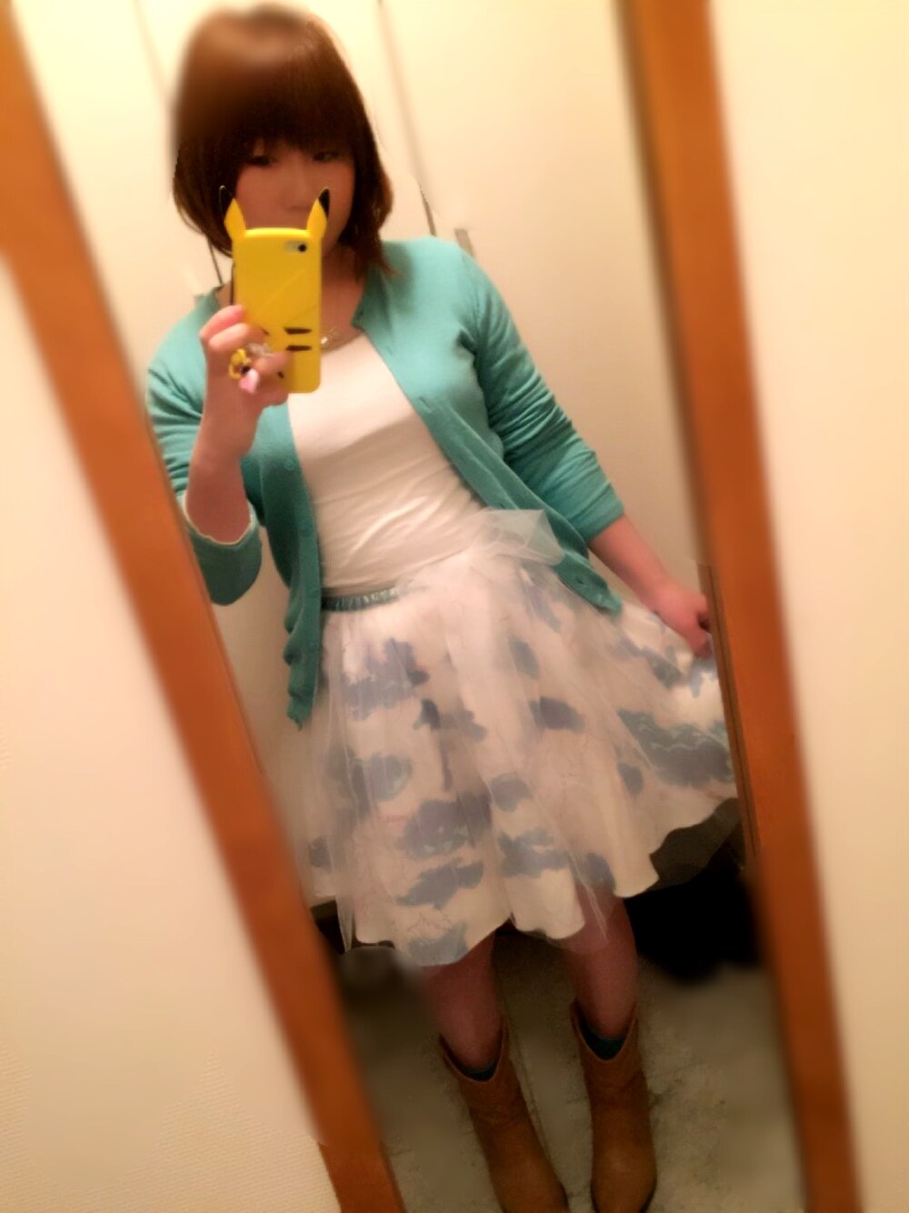 このスカートについてる、チュール巻きスカートの使い方がちょっとナゾw 太りすぎてやばば〜(´×ω×`)