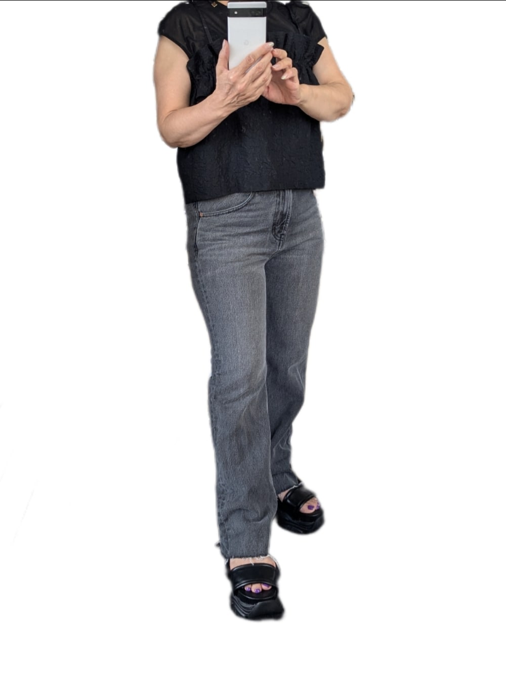 rinamariのデニムパンツ「ルーズフレアデニムパンツ」を使ったコーディネート