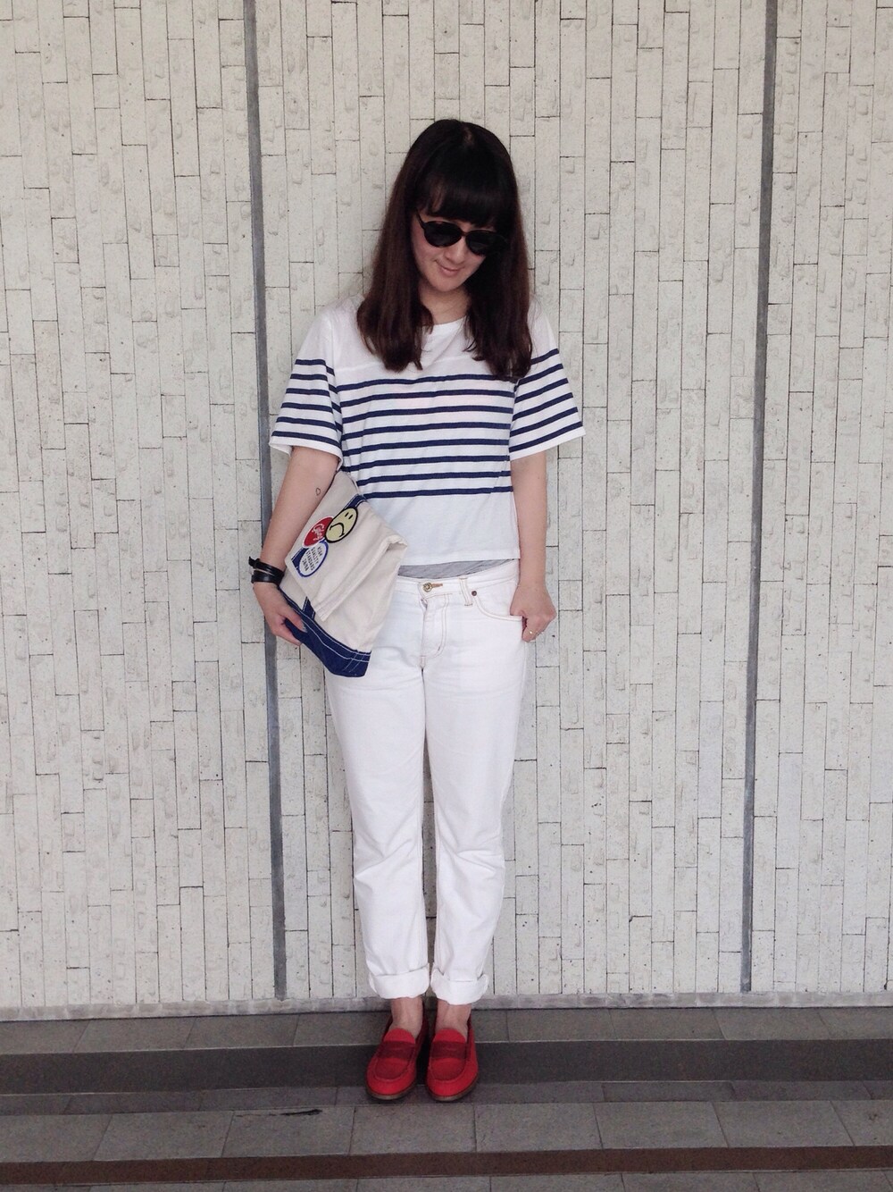 マリンルック♫ 20/80のクラッチがやっ届いた♡♡ ボーイフレンドホワイトデニムはabel サングラスはayame