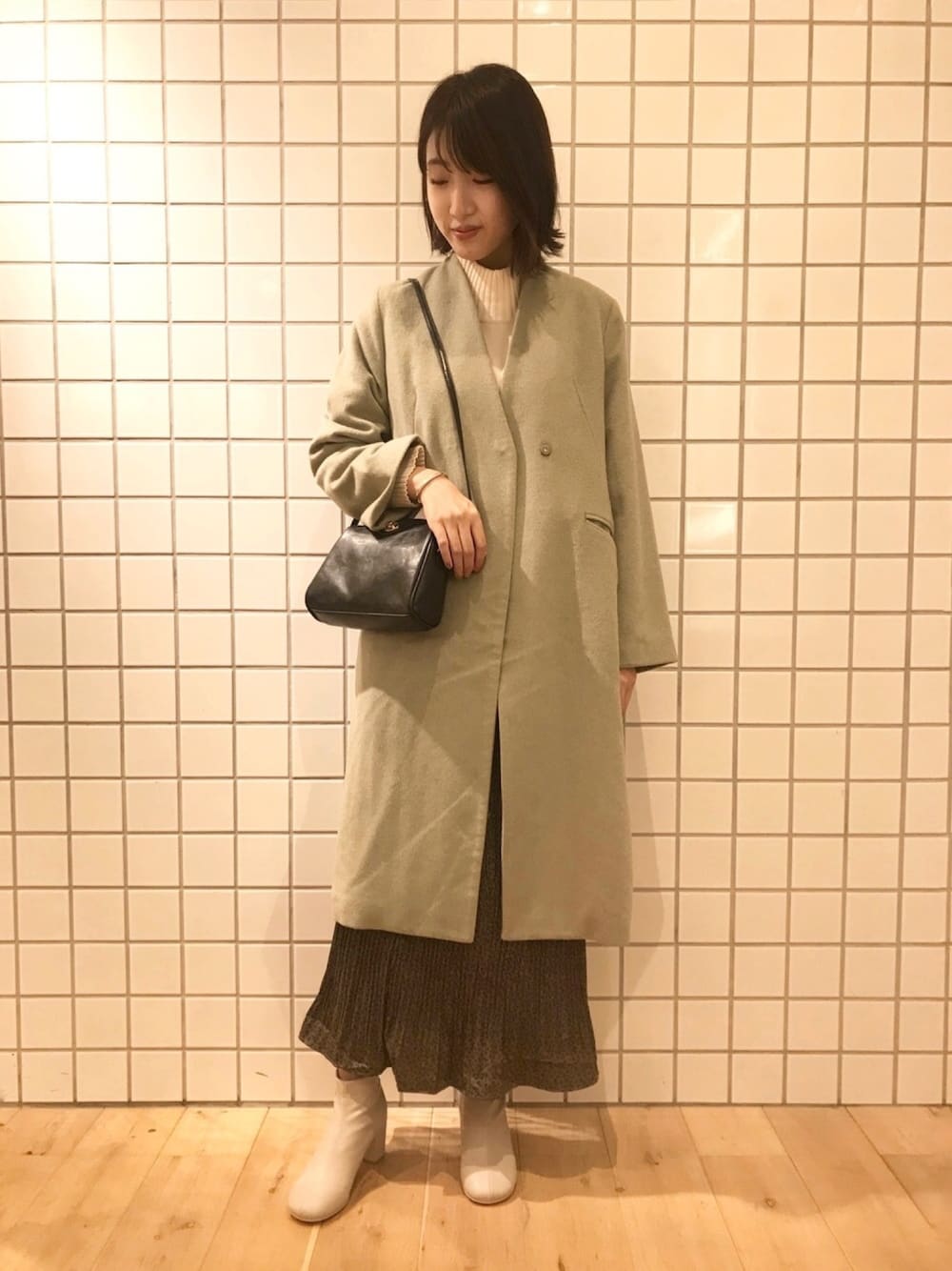 みやりなのノーカラージャケット「ウールビーバーノーカラーコート」を使ったコーディネート