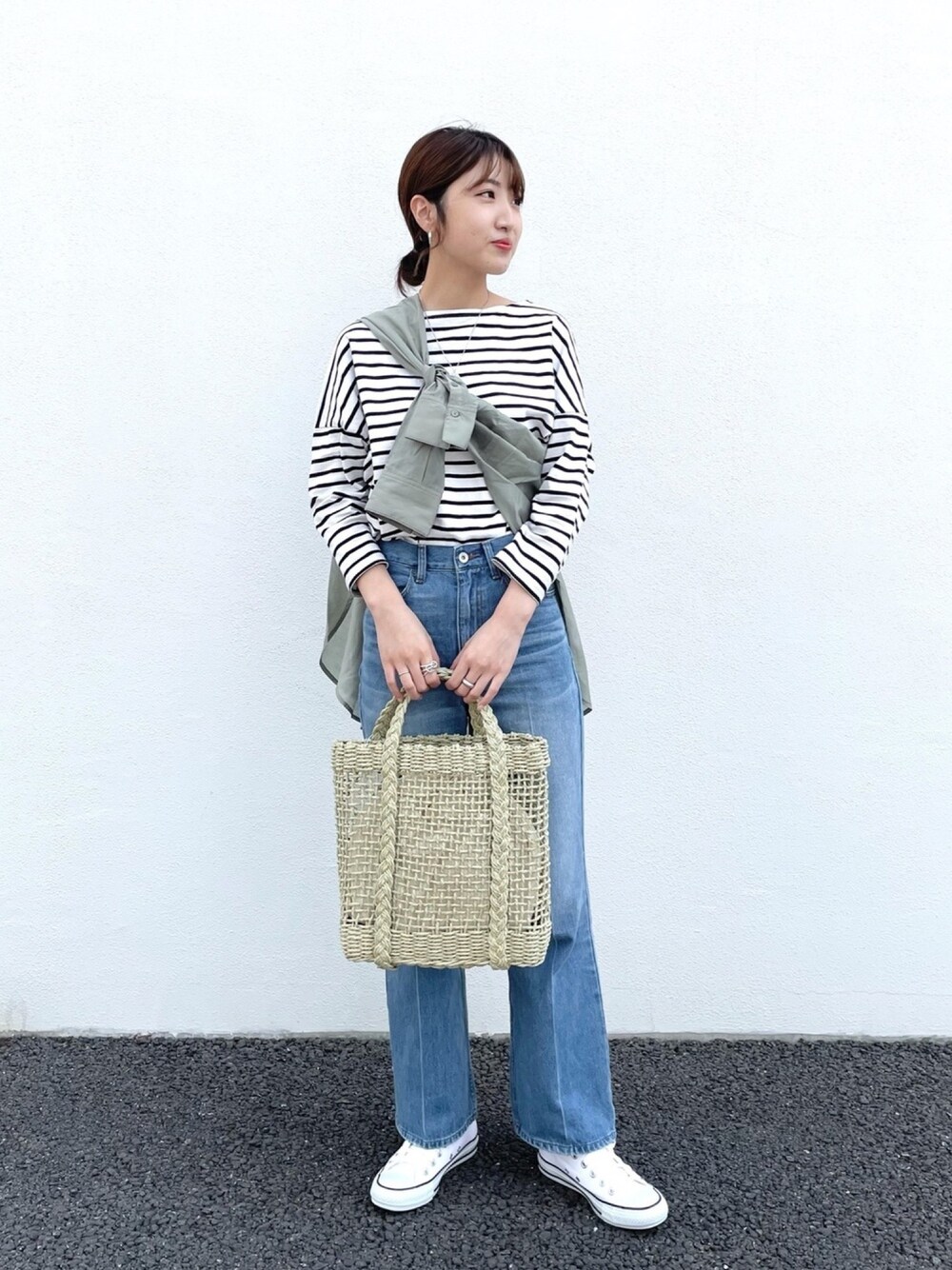 みやりなのデニムパンツ「センタープレスフレアデニム」を使ったコーディネート