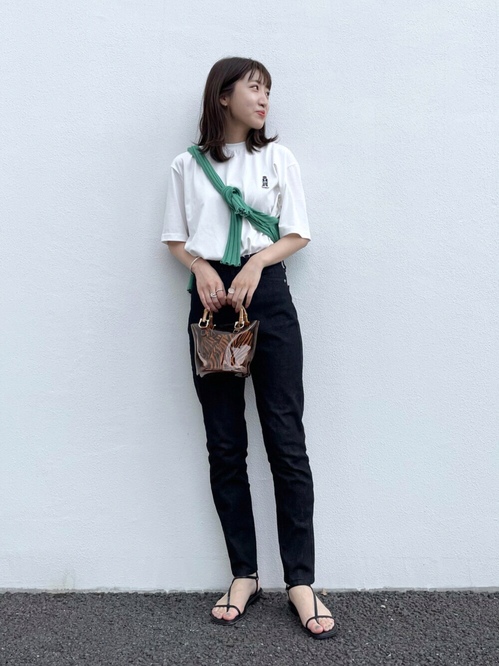 みやりなのショルダーバッグ「MULTI WAYクリアミニトートバッグ」を使ったコーディネート