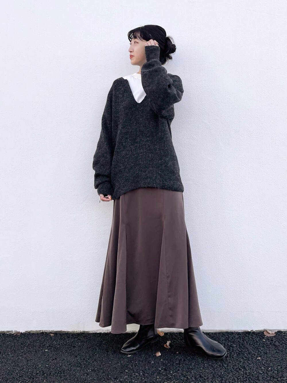 みやりなのニット/セーター「コクーンスリーブVネックセーター」を使ったコーディネート