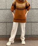 みやりなのニット/セーター「求心柄ボリュームスリーブニットトップ」を使ったコーディネート
