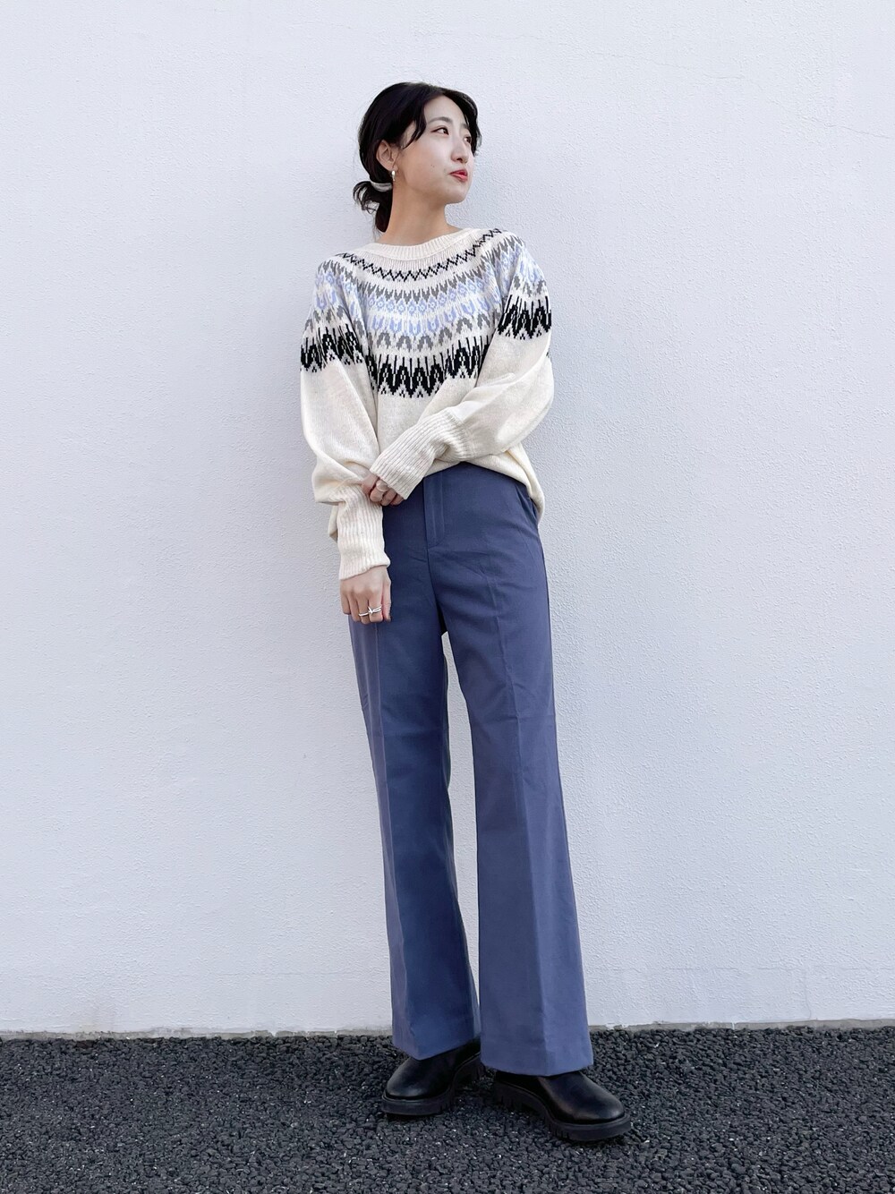 着用コーデ:141件みやりなのニット/セーター「求心柄ボリュームスリーブニットトップ」を使ったコーディネート