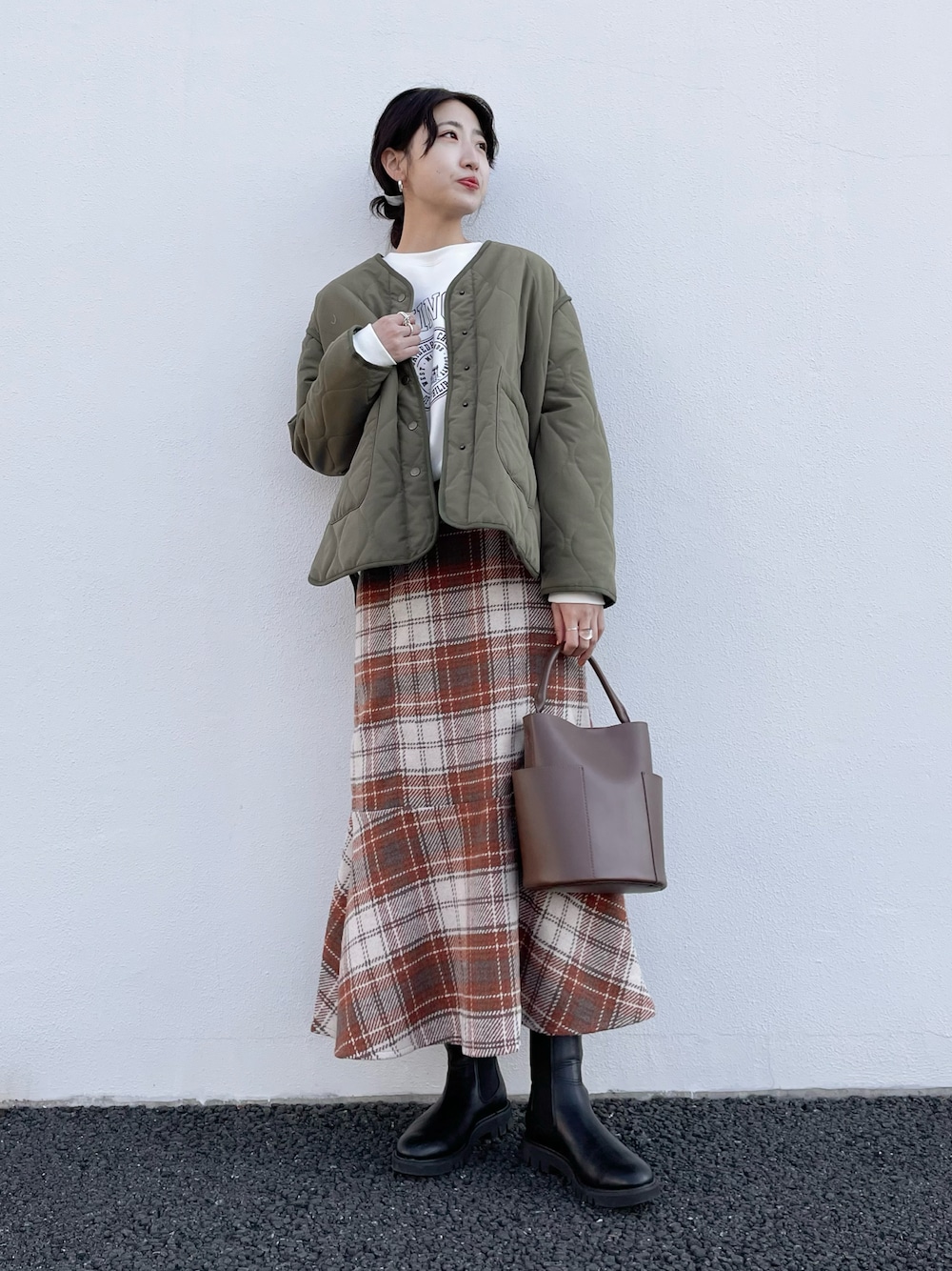 みやりなのナイロンジャケット「『URTECH』キルティングノーカラーショートコート」を使ったコーディネート