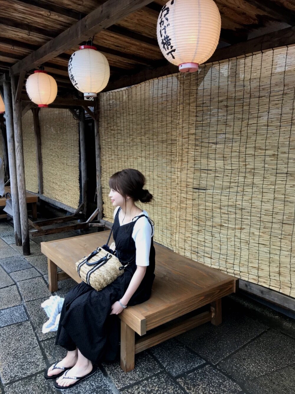 rinango(LOWRYS FARM イオンモール松本)のワンピース「ドビードットキャミワンピース 793070」を使ったコーディネート