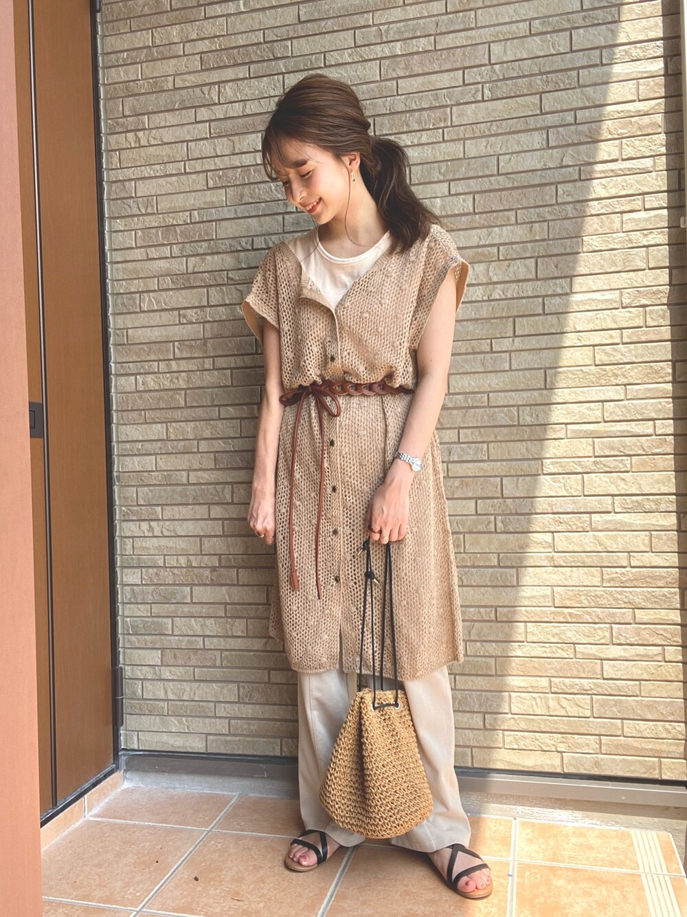 rinango(LOWRYS FARM イオンモール松本)のニット/セーター「◆メッシュド深Vネック前後2Wayノースリーブチュニックニット」を使ったコーディネート