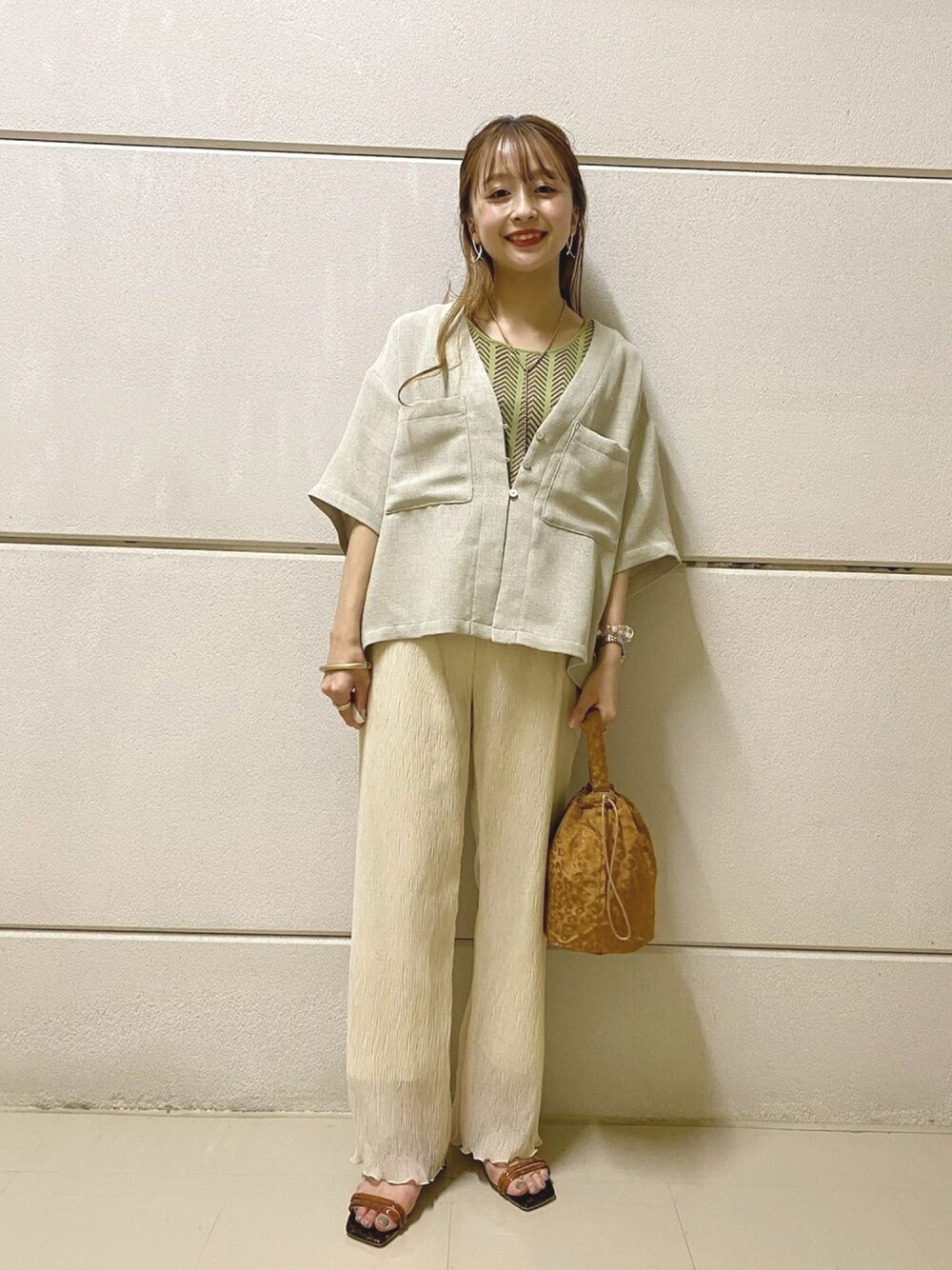 セットアップ風なコーデに、柄が可愛いインナーをプラス🌼💛 Instagram🍎→【__ngo_ringo】 LOWRYSFARMのWebサイトにて スタッフボードからコーデを更新しています♪ プロフィールからご覧になってみてください♪