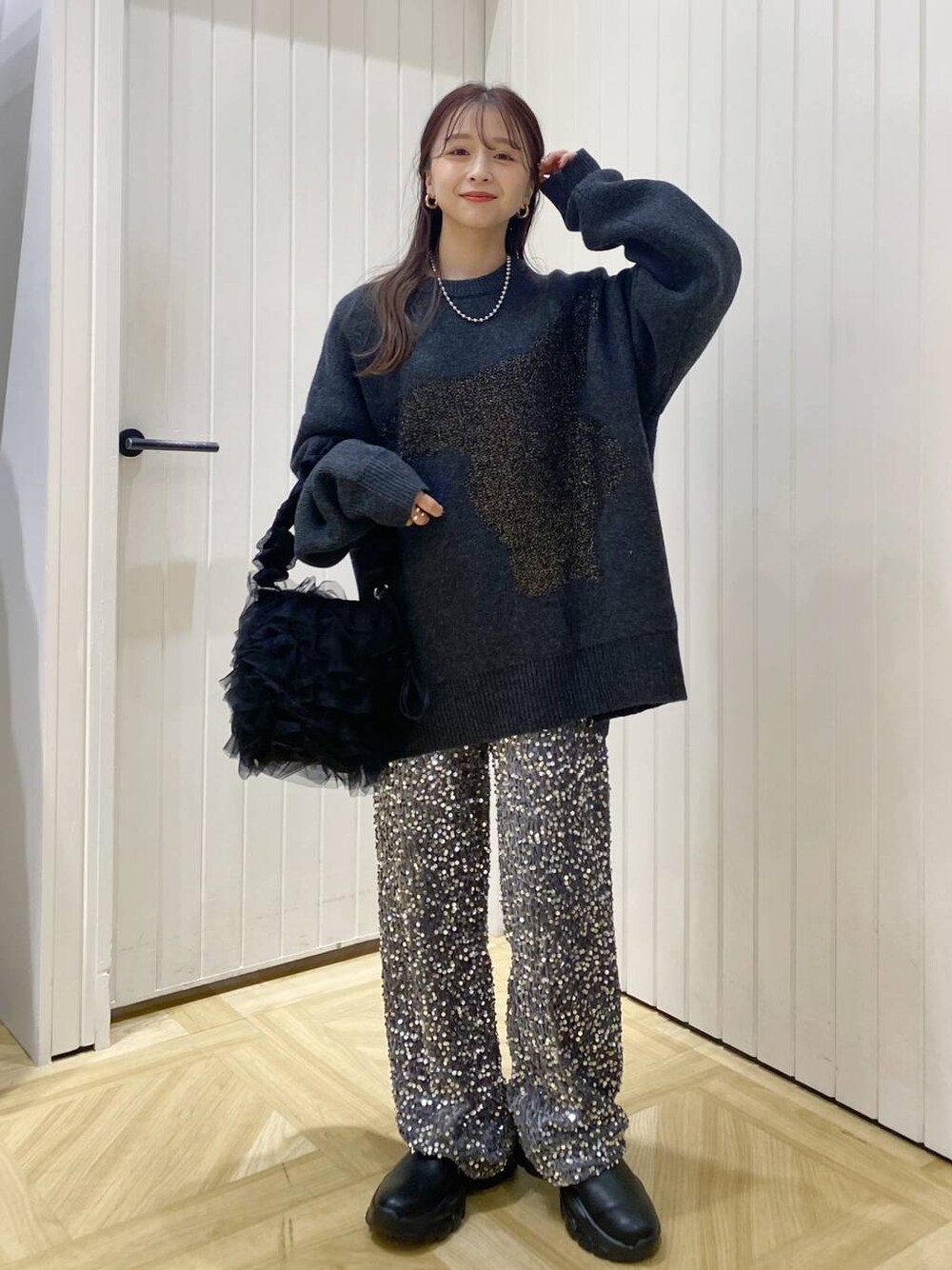 🎄クリスマスコラボアイテム🎄 映画『GREMLIN』ギズモとのクリスマスコラボーレーションアイテムを可愛く合わせてみました✨ ゆったり感が可愛いニット♪ 一枚でお洒落に決まるシルエットで、細身のパンツでも 今年らしくルーズなパンツでも合わせていただけます♪ クリスマスパーティーや女子会など、トップスが映えると 記念撮影などにも良いですよね☺️ 《 staff board & Instagram 毎日更新中!》 どちらもフォローお待ちしてます💛 コーディネートが参考になったらお気に入り♡や、 こちら↓からカートに入れてもらえると嬉しいです✨