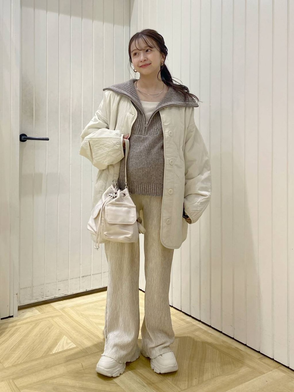 👕おすすめポイント  ̄ ̄ ̄ ̄ ̄ ̄ ̄ ̄ ̄ ̄ ̄ ̄ ̄ ̄ ̄ ̄ ̄ カジュアルなワントーンコーデ♪ ラフなアイテムですが、ホワイトのワントーンにすることで 上品な女性らしい印象になります♡ ハーフジップの襟とキルティングの重ねが可愛くて お気に入りのコーデです✨ 《 staff board & Instagram 毎日更新中!》 どちらもフォローお待ちしてます💛 コーディネートが参考になったらお気に入り♡や、 こちら↓からカートに入れてもらえると嬉しいです♡