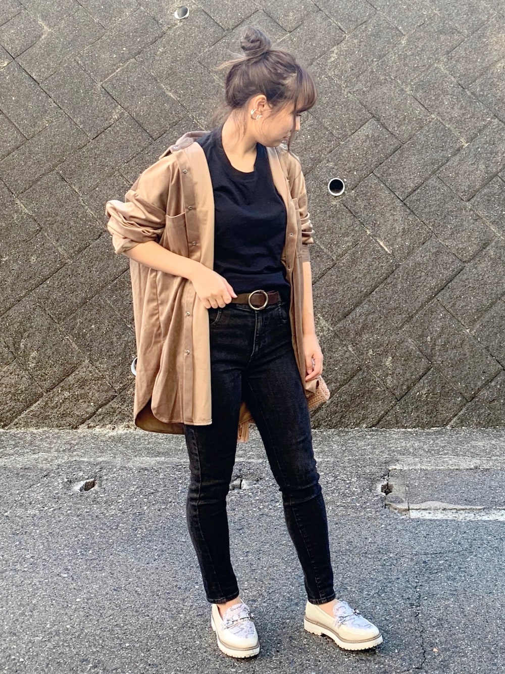 ベルベットシャツ×スキニー