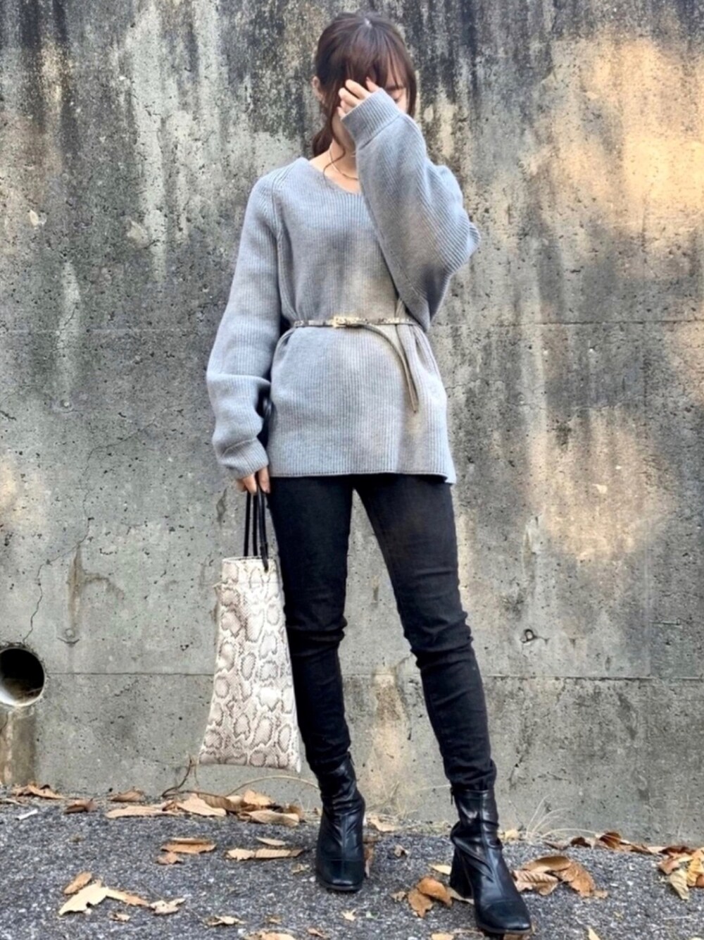 がんものニット/セーター「5GVネックボリュームプルオーバー(ニット)」を使ったコーディネート