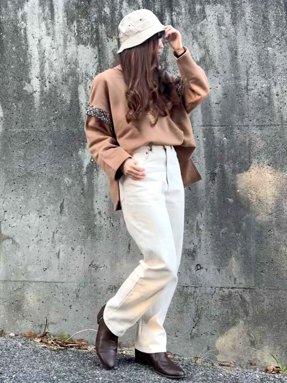 ご覧下さりありがとうございます バケットハット×スウェット×白デニムパンツ ちょきさん様、たっくん様 フォルダありがとうございます!
