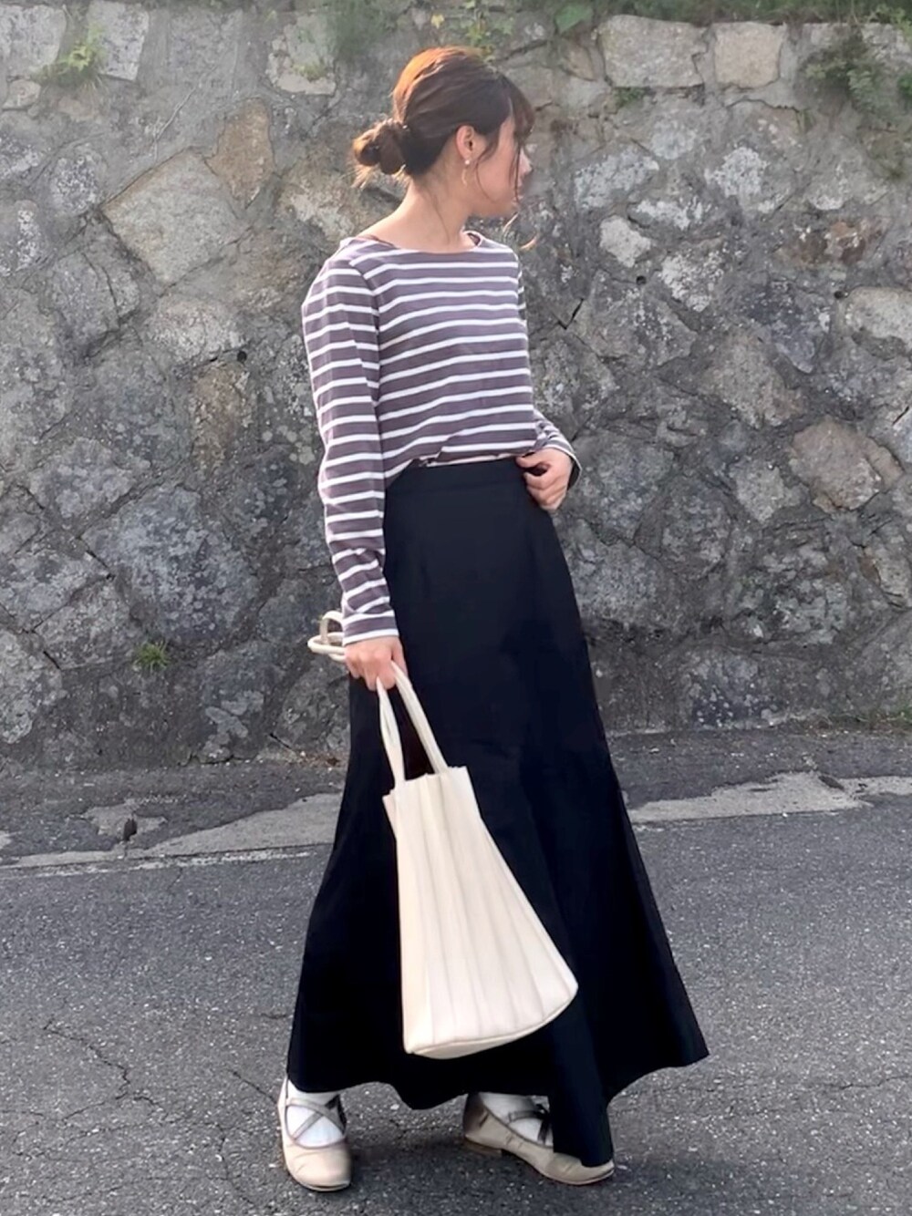 がんものTシャツ/カットソー「ボートネックボーダートップス」を使ったコーディネート