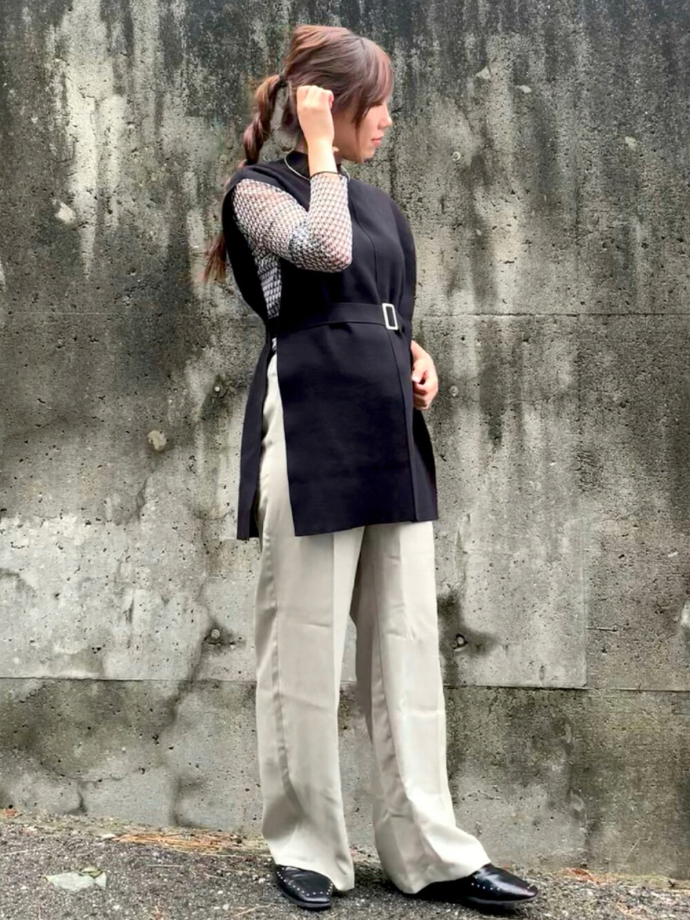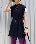 がんものベスト「スローサイズニットベスト」を使ったコーディネート