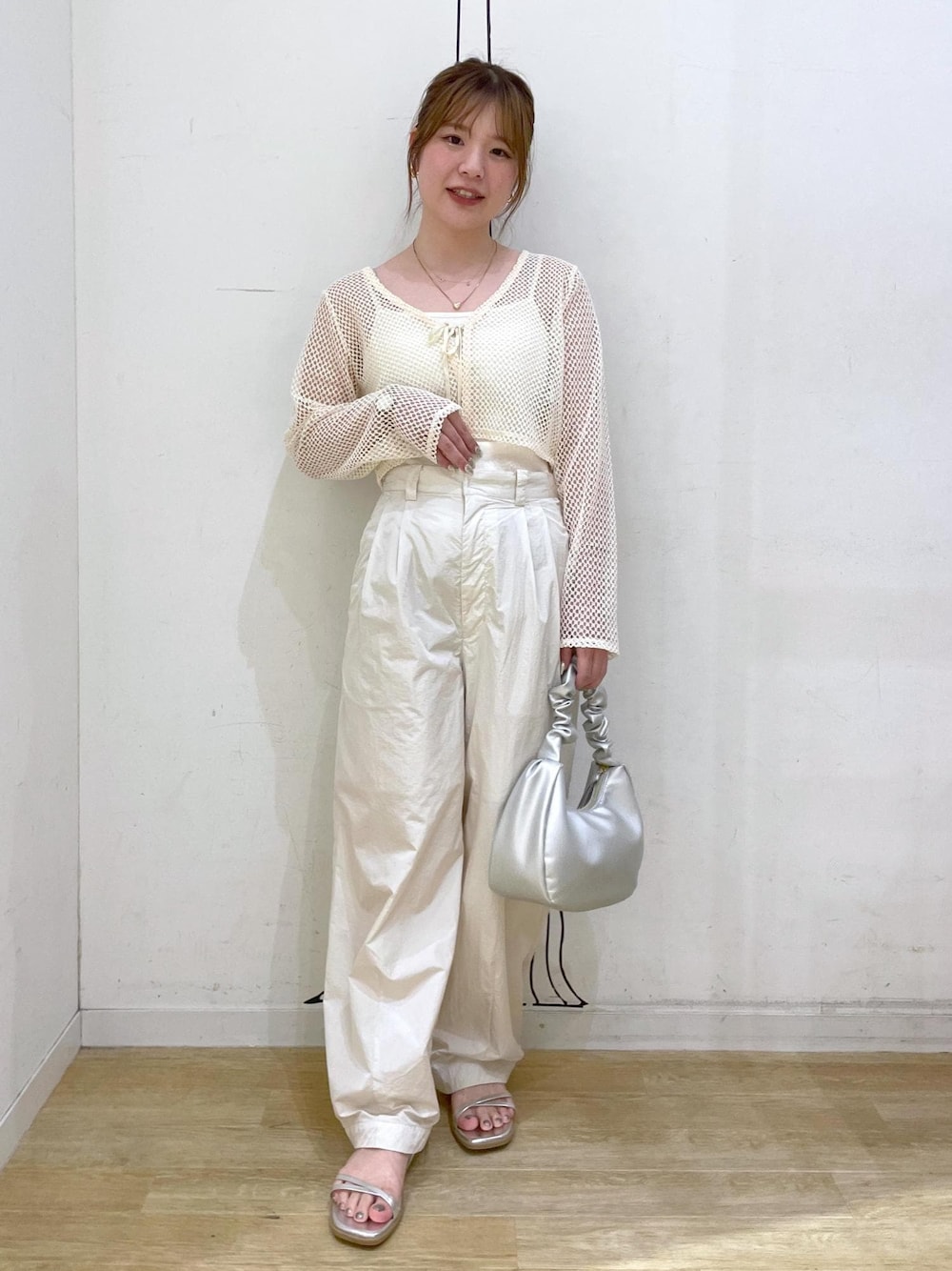 オールホワイトコーデです! 小物はシルバーで統一し甘すぎないようにしました! 程よい透け感とトレンドを取り入れたコーデです この夏に着ていただきたいコーディネートです♡´-