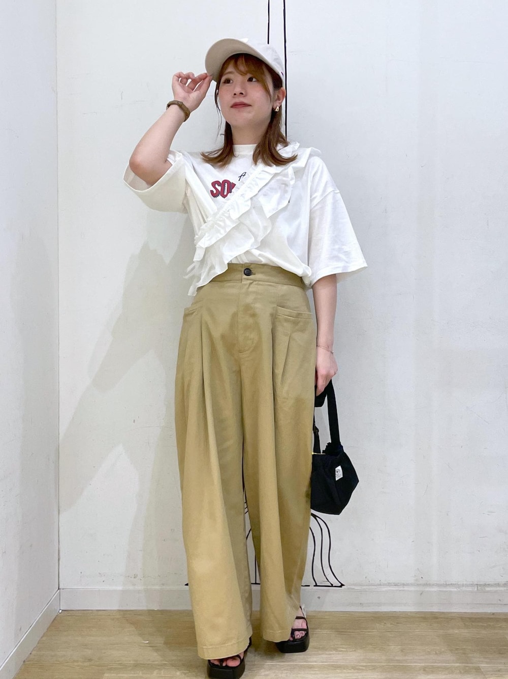 rina(ROPE' PICNIC イオンモール広島府中)のショルダーバッグ「撥水加工/サイドドロストポケットミニショルダーバッグ」を使ったコーディネート