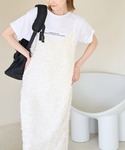 ジャガードワンピースにほんのりラメのトップスを合わせた大人可愛いコーディネートです!足元はサンダルで夏らしく。 夏のワントーンコーディネートです♡´-
