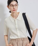 程よいカジュアルなポロニットにシンプルなパンツを合わせたオフコーデです!ゆったりしてるけどキレイめに着たい方におすすめなコーディネートです♡´-
