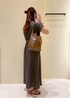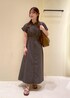 人気ワンピースの綺麗めコーデです! 夏らしい素材感のワンピースにトーンは落ち着いたカラーで合わせた上品コーデです!秋まで使えるワンピースです♡´-