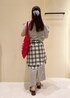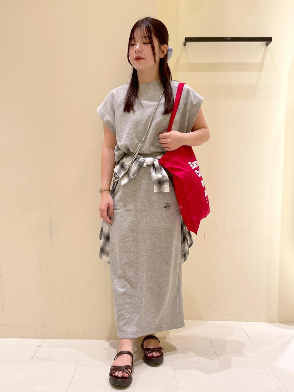 セットアップ対応のコカ・コーラトップスとスカートにトレンドのチェック柄シャツを合わせたカジュアルスタイルです! ゆったりとしたシルエットでラフに着れます。