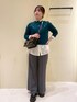ミラノリブカーディガンにペプラムブラウスを合わせきれいめカジュアルコーデ! パンツスタイルにしてきれいめにまとめました。 秋のお出かけコーデです! ※靴は私物です。