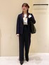 春からの新生活にぴったりなリクルートスーツコーデ! お仕事や学校で使えるセットアップ対応で新しい環境で必要な方にぴったり! 小物はシンプルに黒でまとめて見ました♡´-
