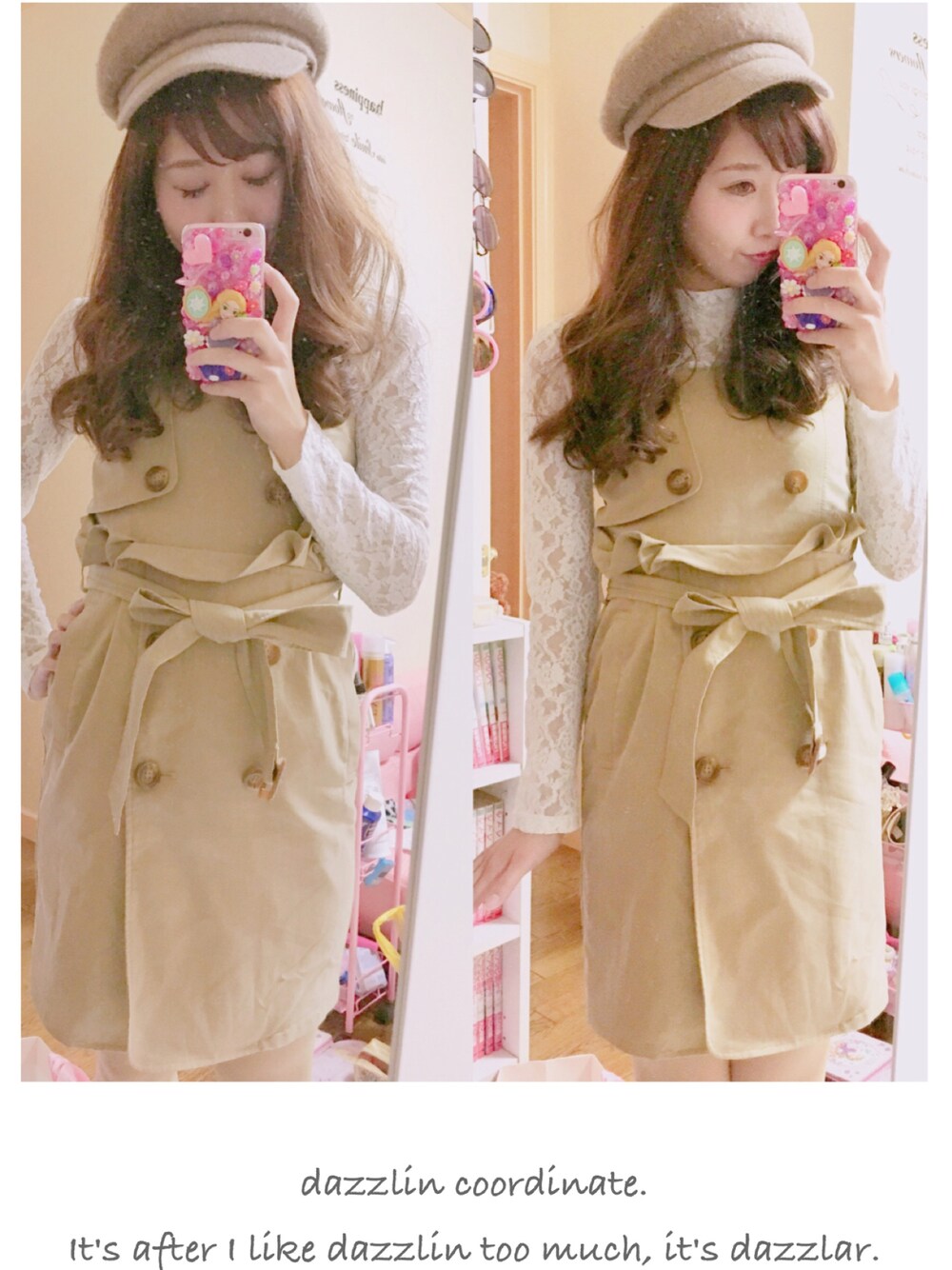 ガーリートレンチcoordinate♡ 茶系でまとめたガーリースタイルだよん♡珍しいトレンチ型のワンピ可愛いすぎてお気に入り(ミ・。・ミ)♡