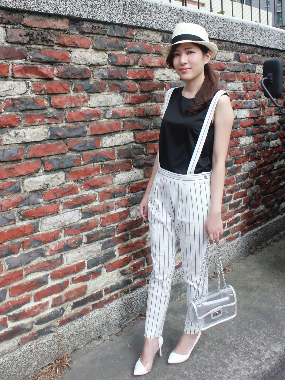 Rinaのサロペット/オーバーオール「ストライプサスペンダーパンツ」を使ったコーディネート