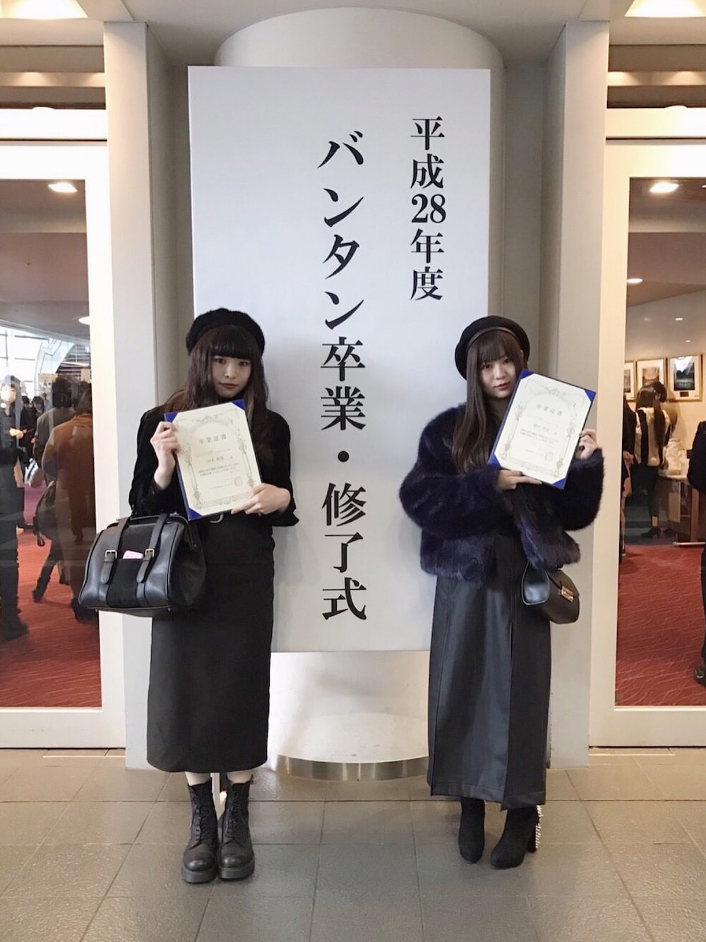 卒業式。 正装に全身黒で揃えました。
