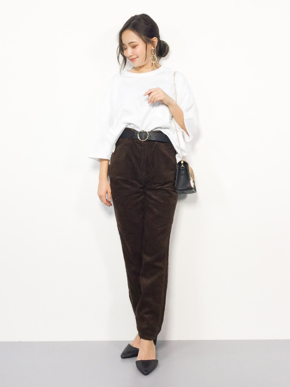 𝑅𝐼𝑁𝐴のTシャツ/カットソー「【NINE】《WEB限定》ビッグシルエットラウンドカット刺繍Tシャツ」を使ったコーディネート