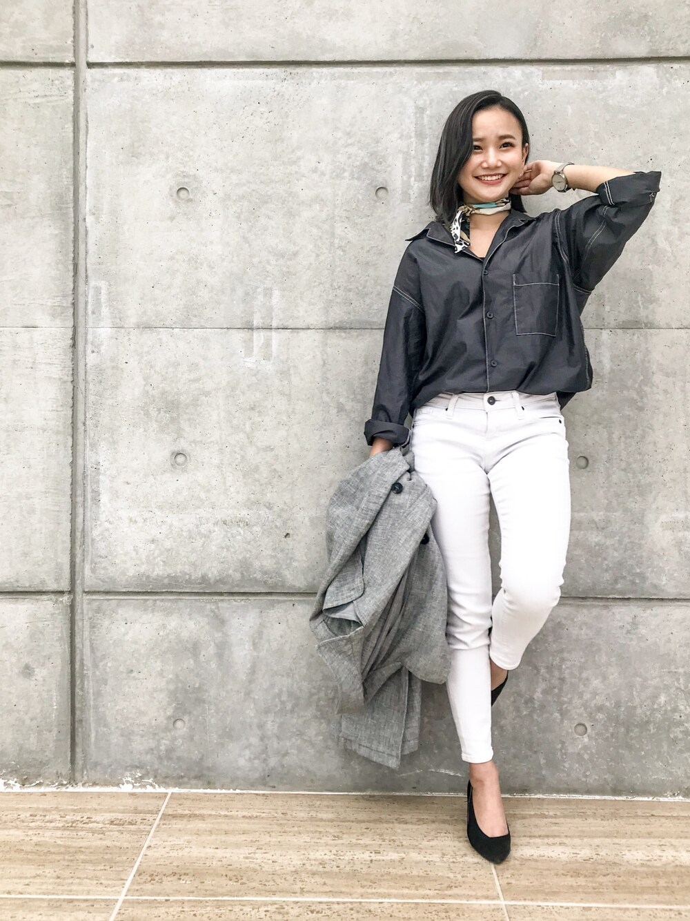 大人カジュアルに🍂 スカーフは前の投稿とセット だったものです♪ 実は牛柄🐄!笑 柄が大きく見えすぎちゃう時は ねじって細くしてから二重に 巻いてみるとちょうどよくなります✌︎ そしてシャツはGUのメンズ🙋🏻♂️ ステッチが見えるデザインなので 普通のシャツと少し違いを出せるかなー と思いなんとセールで買いました🤭✨ オーバーサイズで着れるのも◎