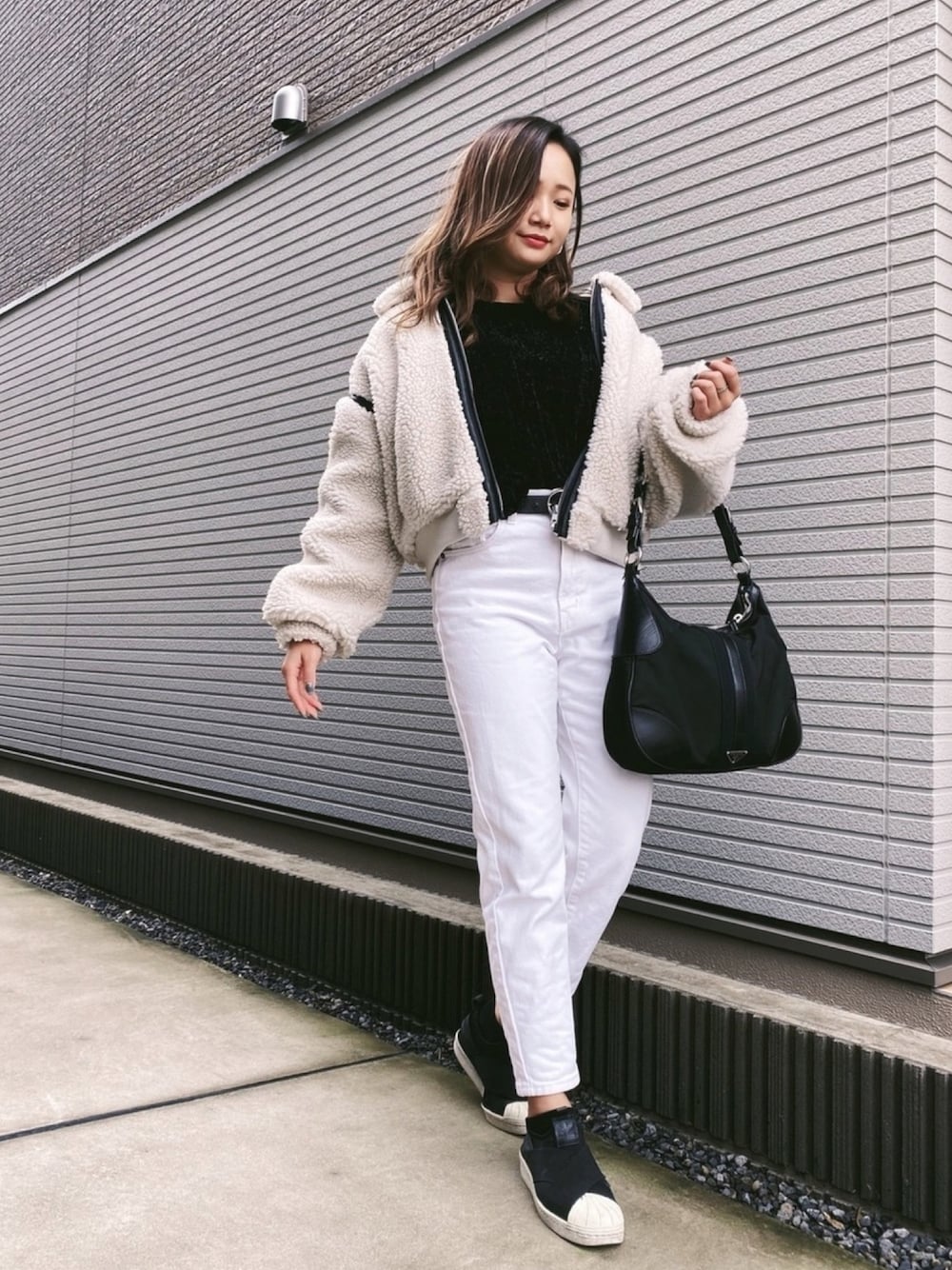 この白デニムは 足がスラッと見えるので お気に入り👩🏻👍🏻 丈感もちょうどいいです! ボアジャケットも 昨年から引き続き愛用中^_^ 襟付きだからカジュアルに なりすぎないのが好きです◎ Instagram→@r_____ina22