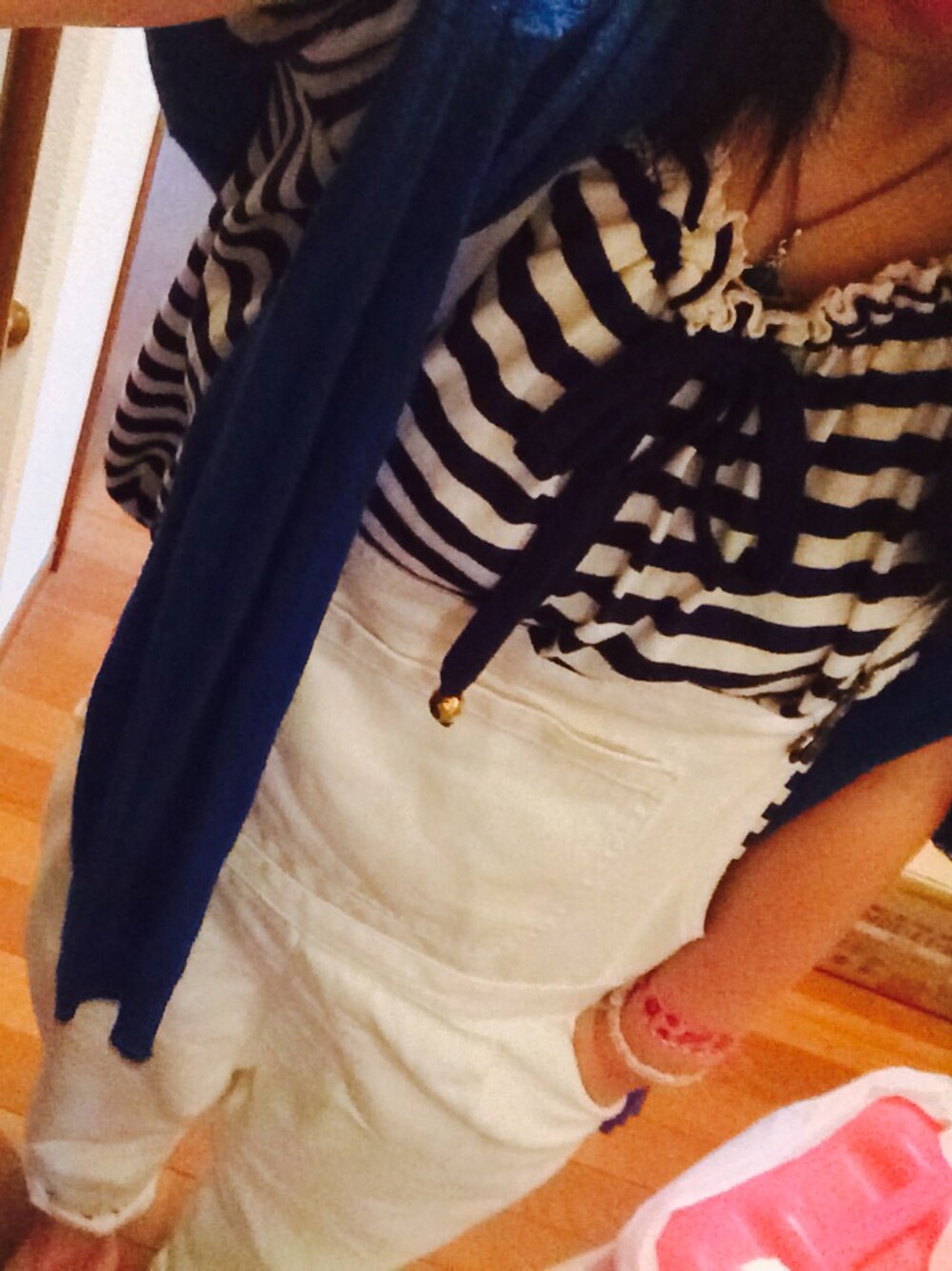 tops...LIZLISA サロペット…WEGO カーディガン…LOWRYS FARM ペンダント…vivinne westwood 予備校午前中で 午後からお友達と原宿〜 ホワイトサロペットが 夏ぽくてお気に入り