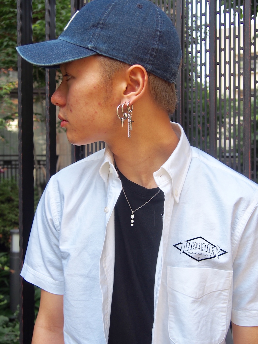 . いつもいいねありがとうございます😊 . 今日は、THRASHER ダイアモンドロゴ半袖シャツ/White/Lサイズと、インナーにFreeseam ベーシッククルーネック半袖Tシャツ/Black/Lサイズを着用しました! . THRASHERのロゴがポイントの夏にぴったりな、爽やかカラーのシャツです ボタンをきっちり締めても、オープンにしてインナーを着用したりとシャツの使い方はたくさんありますよね♪ . 今回は、着心地バツグンで現在サマーセール中のFreeseamをインナーとして着用したコーデにしました★