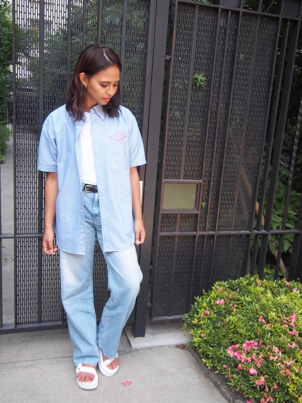 いつもいいねありがとうございます😊 . 今日は、THRASHER ダイアモンドロゴ半袖シャツ/BLUE/Mサイズと、dictionary レザー細くベルト/Blackを着用しました! . 今日は、雨だしもやもやな天気でしたね⚡︎ なのでファションは明るめで爽やかにしました! . ブルーのTHRASHERのシャツにブルーのデニム、スポーツサンダルと、ボーイズライクで爽やかに仕上げました★