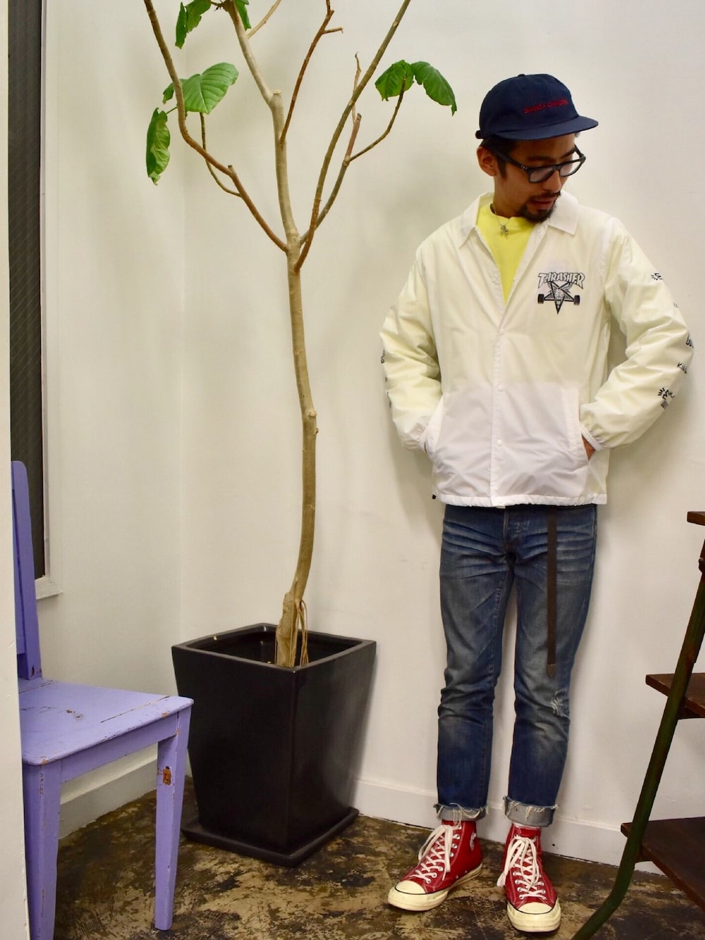 . いつも、いいねありがとうございます . 今日は、THRASHER×Keith Haring コーチジャケット/ホワイト/Lサイズを着用しました . また雨ばかりの日が続きますね、、 気分を上げるためにもコーデは明るめにしました コーチジャケットの中に着込めば暖かいですよ!
