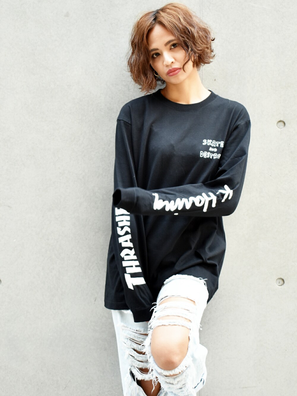 RiNcのTシャツ/カットソー「【THRASHER×Keith Haring】スラッシャー×キースへリング コラボロングTEEシャツ SKATE&DESTROY」を使ったコーディネート