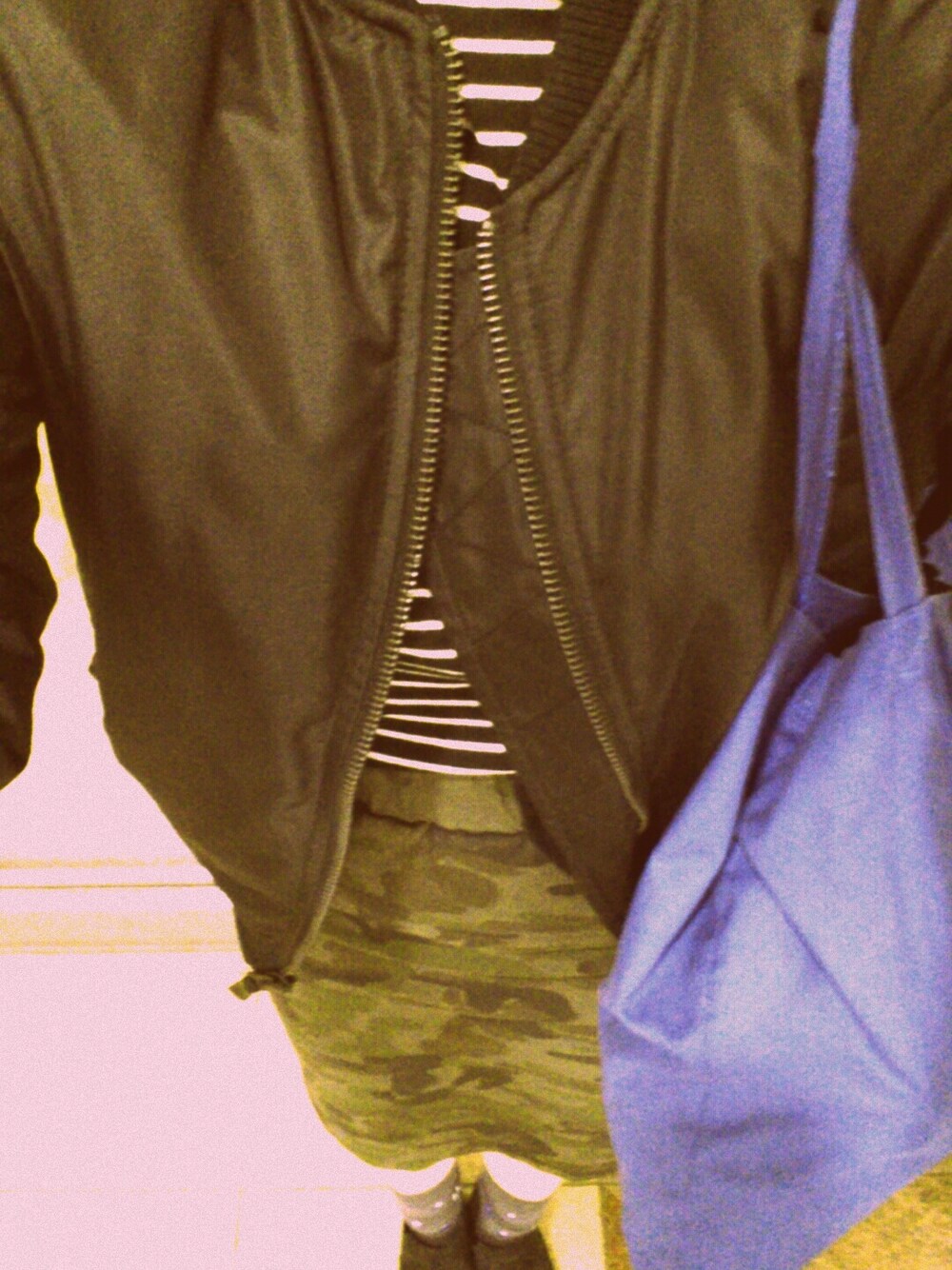MA-1→TOPSHOP border high neck→梨大 skirt→Kastane socks→Socksappeal shoes→Kastane bag→MMMG