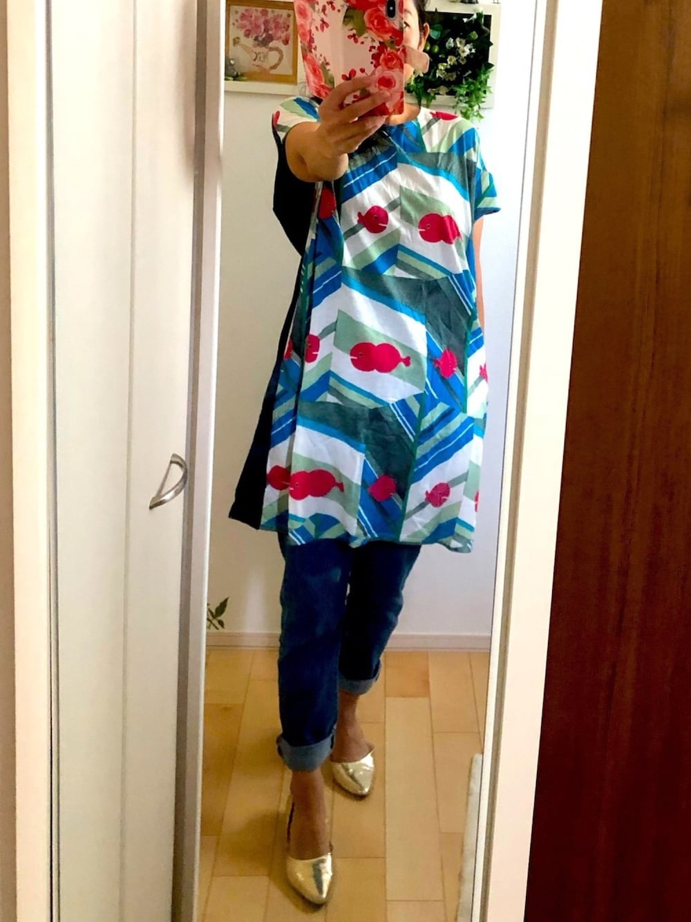 Ring-go'roundのワンピース「コラボレーションワンピース/きんぎょがにげたミラー(五味太郎)(ネイビー)」を使ったコーディネート